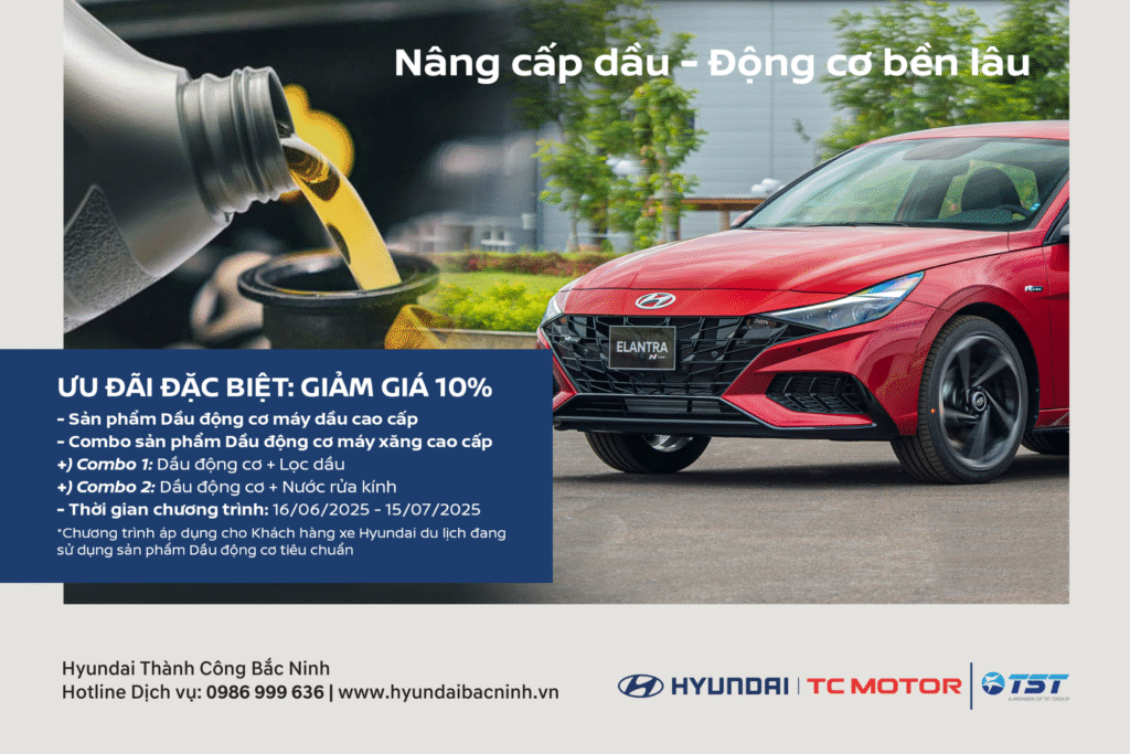 Từ 16/06 đến 15/07/2025, Hyundai Bắc Ninh triển khai chương trình chăm sóc đặc biệt dành cho khách hàng đang sử dụng dầu tiêu chuẩn: