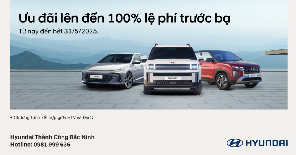 Hyundai Bắc Ninh xin gửi tới Quý khách hàng Chương trình ưu đãi hấp dẫn lên đến 100% lệ phí trước bạ cho các dòng