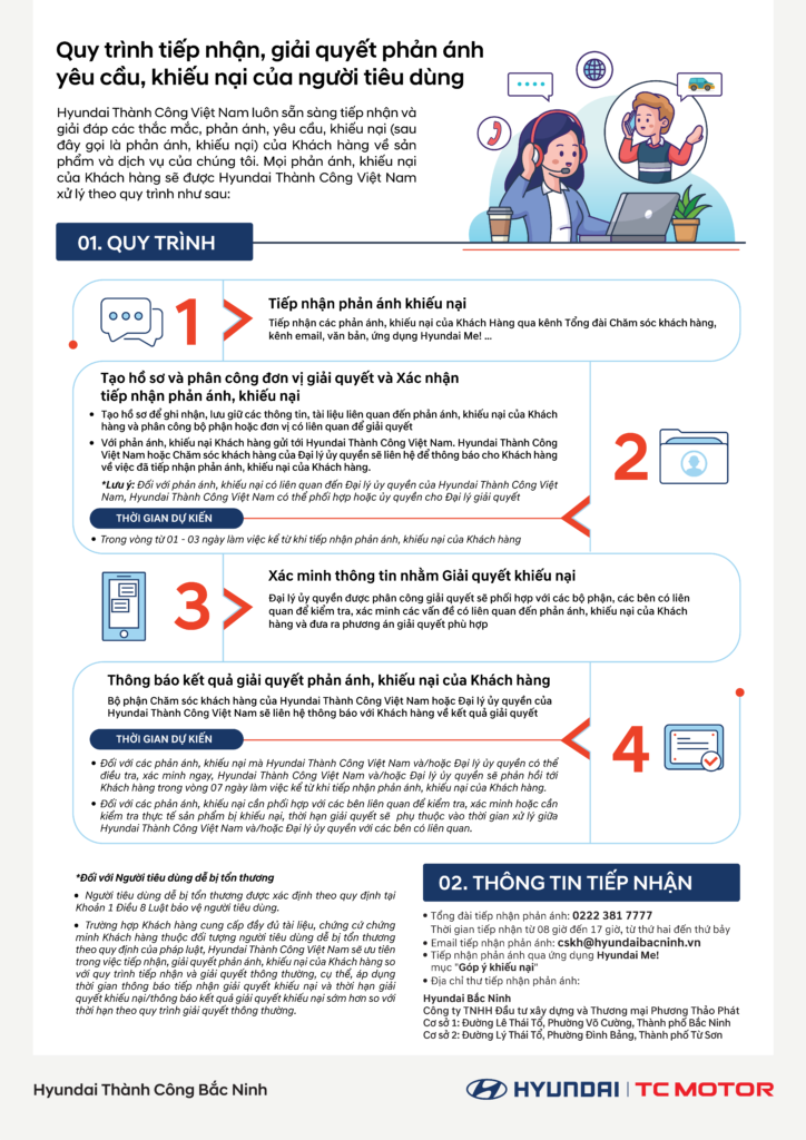 Hyundai Thành Công Bắc Ninh luôn sẵn sàng tiếp nhận và giải đáp các thắc mắc, phản ánh, yêu cầu, khiếu nại của Khách hàng
