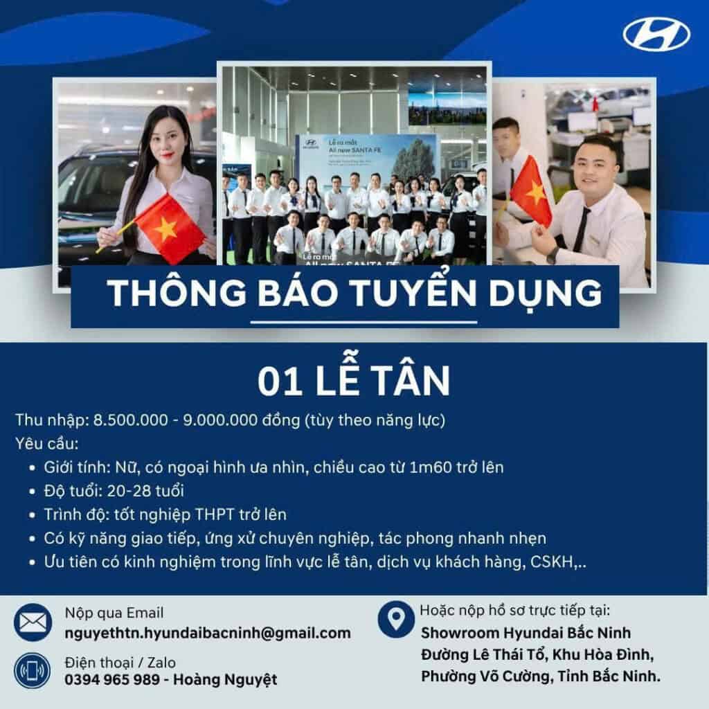 🌸 HYUNDAI BẮC NINH TUYỂN DỤNG LỄ TÂN SHOWROOM 🌸 Bạn đang tìm việc làm Lễ tân tại Bắc Ninh trong môi trường chuyên nghiệp?