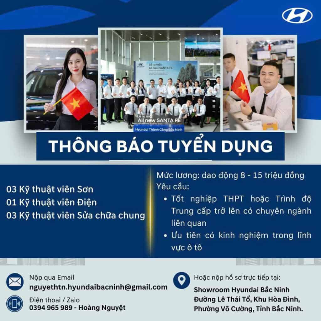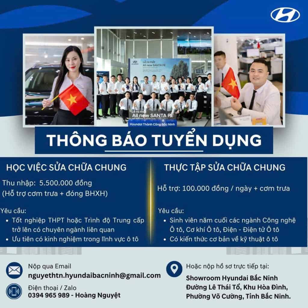 🌟 HYUNDAI BẮC NINH – THÔNG BÁO TUYỂN DỤNG 🌟 Cơ hội gia nhập đội ngũ kỹ thuật chuyên nghiệp tại Đại lý ủy quyền