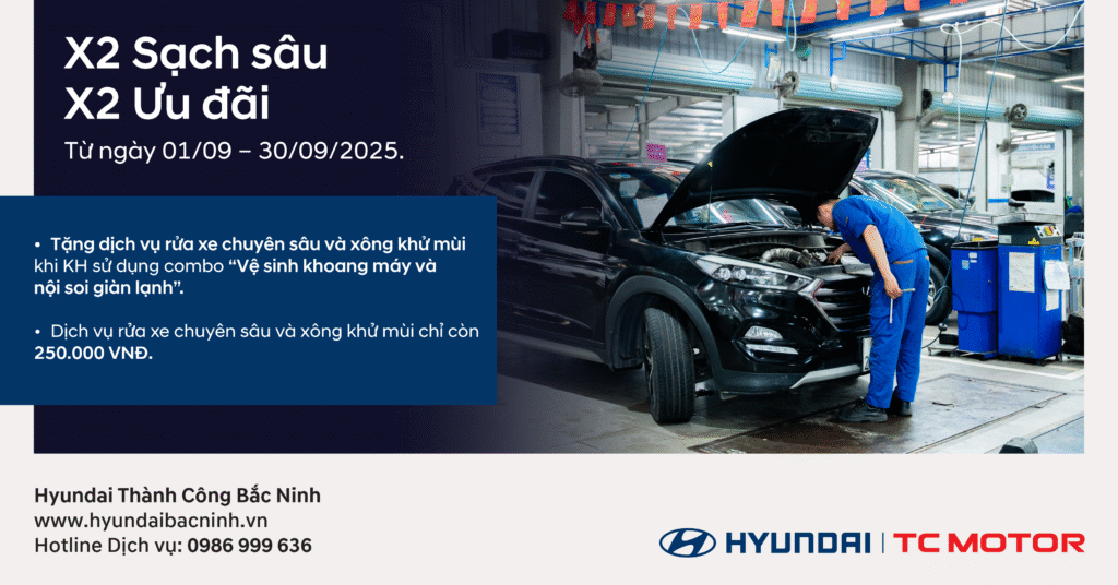 Thời gian áp dụng: 01/09 – 30/09/2025 Chăm sóc xế yêu sạch sâu toàn diện – đón thu sang mát mẻ cùng Hyundai Bắc Ninh!
