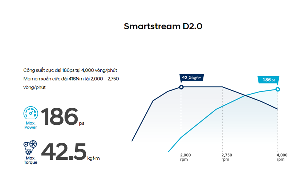 Nhấn bàn đạp ga và cảm nhận nhịp cảm xúc của bạn với sự bứt tốc phấn khích mà mượt mà của động cơ Smartstream, công nghệ động cơ mới nhất của Hyundai.