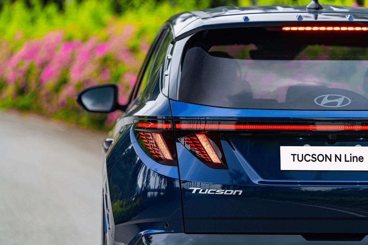 Cụm đèn hậu LED kéo dài mang tính biểu tượng khẳng định hình ảnh công nghệ cao của Hyundai Tucson.